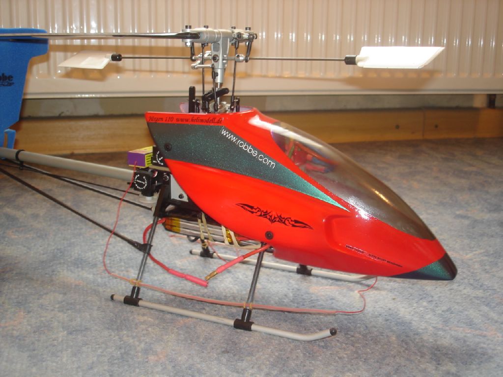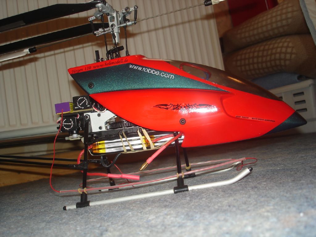 Die Einstellung von 55% Empfindlichkeit am Gyro, sowie die von mir geschätzte Länge der Heckanlenkung, passte auch auf Anhieb.