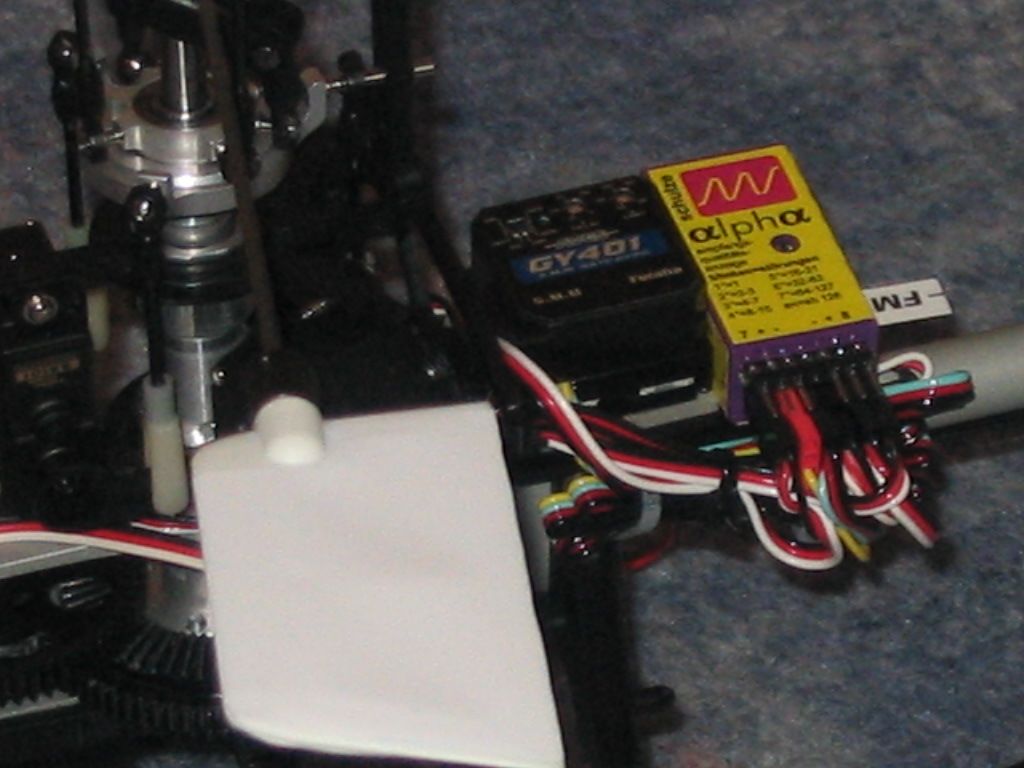 Entgegen der Vorschläge den Empfänger vorne, und hinten den Gyro aufzusetzen, habe ich dies umgedreht.