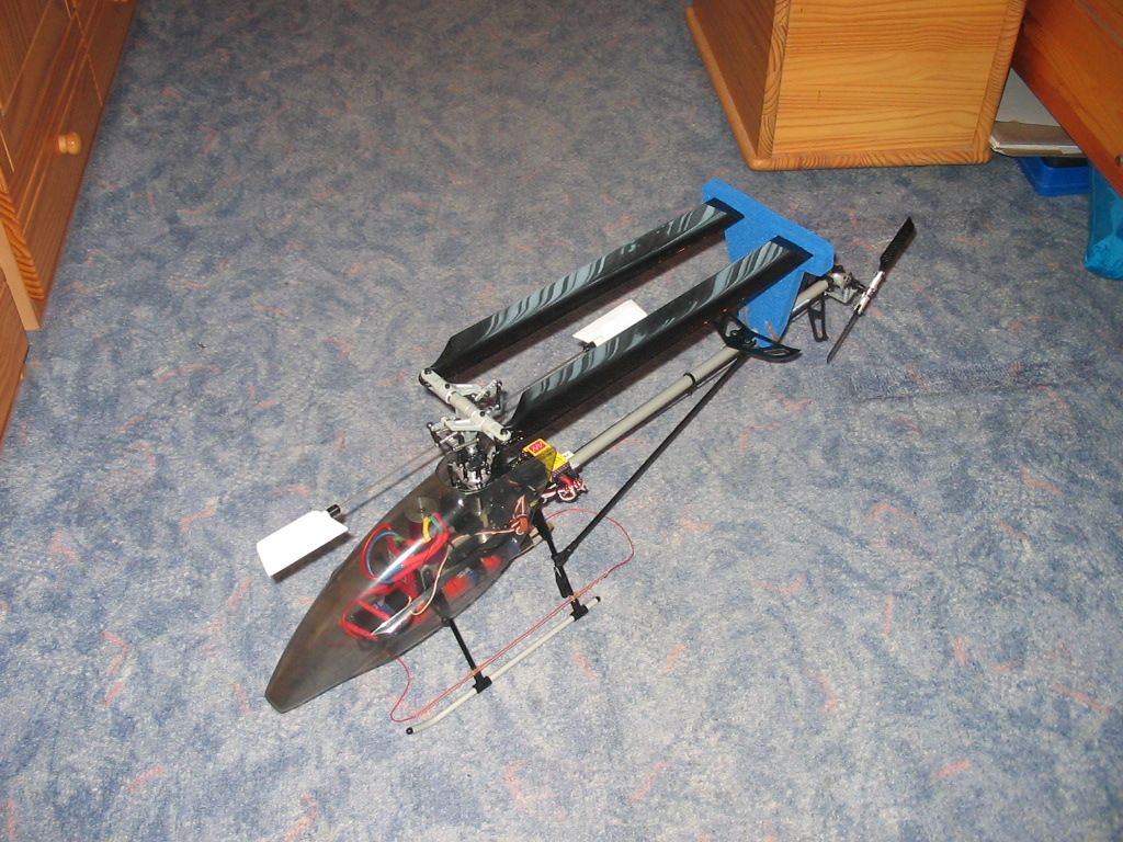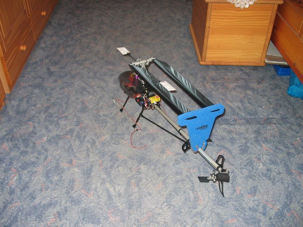 Liebe Firma Robbe, für 599.- Eu´s und wunderschönen Cfk-Blättern, hätte man einen Transporthalter ruhig zum Lieferumfang nehmen können !